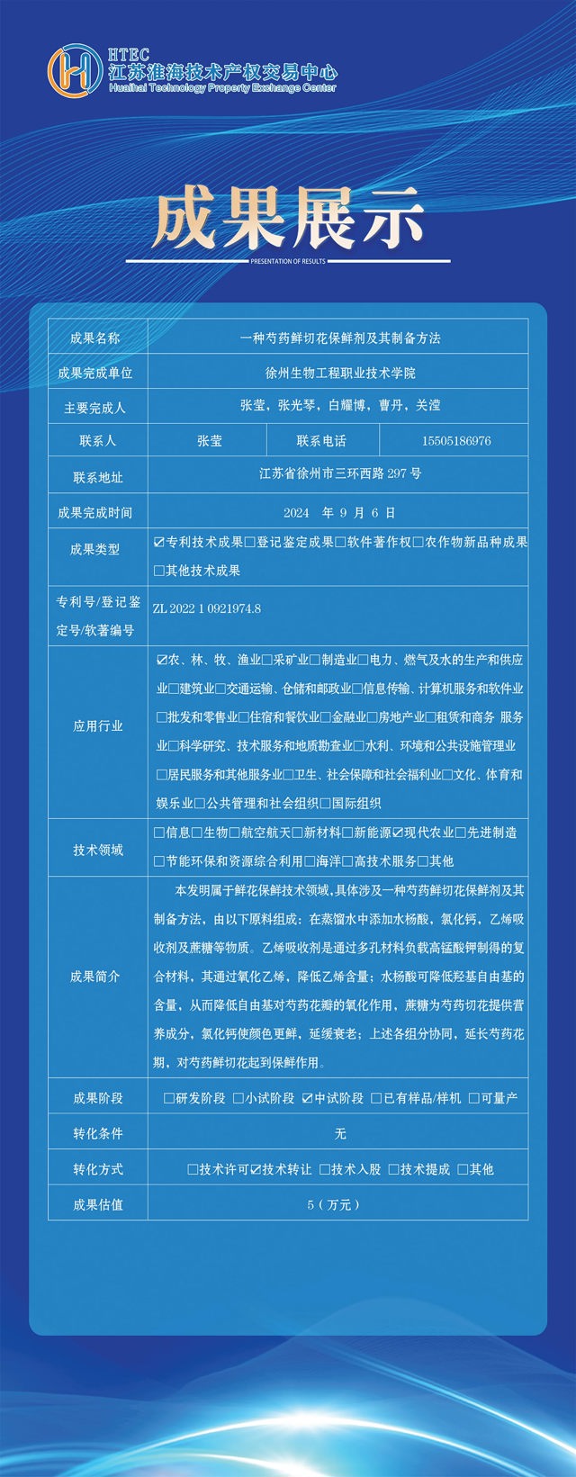 | 一种绿色建筑设计生态装饰板结构 | 江苏建筑职业技术学院 技术转移中心 | 徐州海派科技有限公司 | 1万元 | 2025-11-18 —— 2025-12-02 | 公示中 |